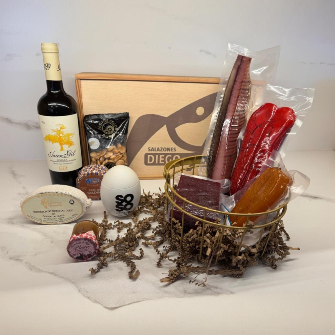 · Las bandejas y cestas de las fotos de los bodegones no están incluidos en los regalos gourmet.