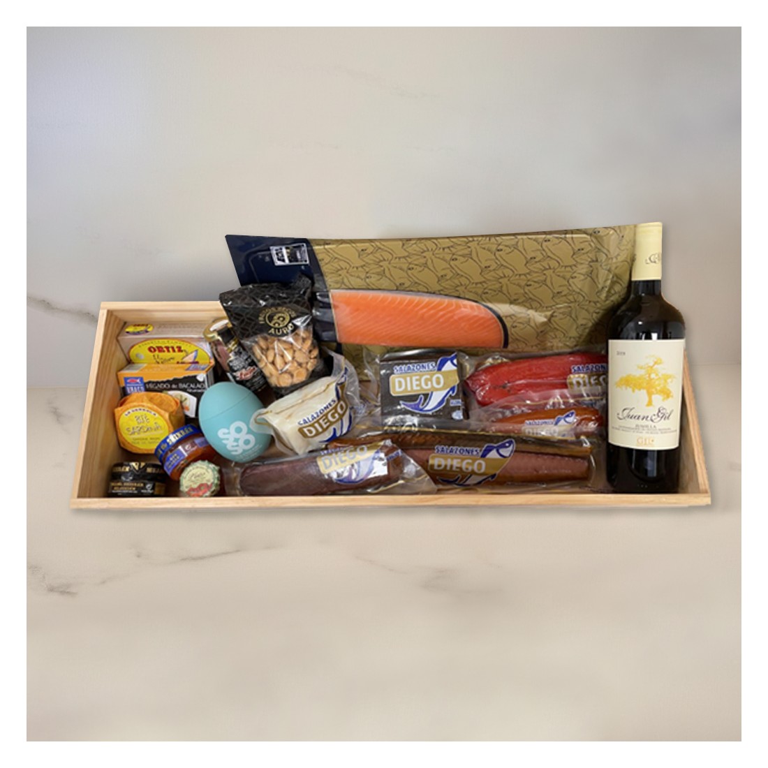 Las bandejas y cestas de las fotos de los bodegones no están incluidos en los regalos gourmet.